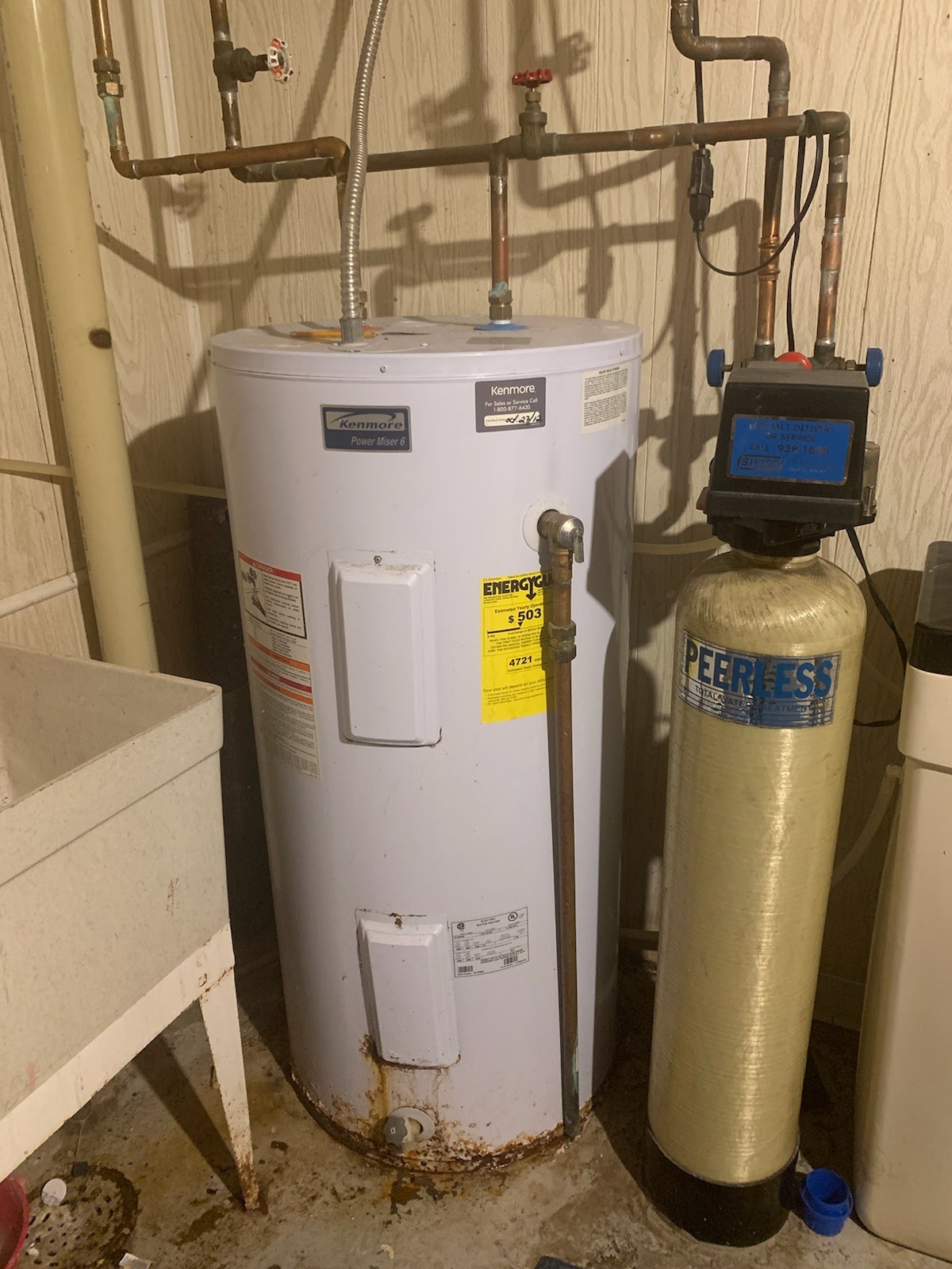 We say this because if you can see rust, that means the tank’s integrity may be compromised, and water is just waiting to get out. In a water heater tank, there are several layers of protection between the water and the outside. From the inside out, there is an anode rod in the water that makes it less corrosive, there’s an enamel layer between the water and the steel, then there’s the steel, then the outside. Visible rust on the tank means that the integrity of the steel itself is compromised, and there’s no telling how long until it gives out.
